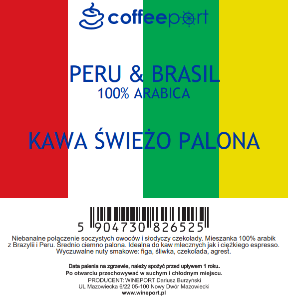 KAWA COFFEEPORT Peru & Brasil 100% Arabica 250g Ziarna
