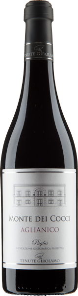 Tenuta Girolomo to mały rodzinny producent win w Pugli posiadający 50hektarów winorośli i produkujący ok 300000 butelek rocznie. Winogrona do produkcji tego wina pochodzą z doliny Itria ok 450m nad poziomem morza. Aglianico Monte dei Cocci przez ok 6 miesięcy w beczkach z dębu francuskiego następnie przez minimum 6 miesięcy w butelkach.
