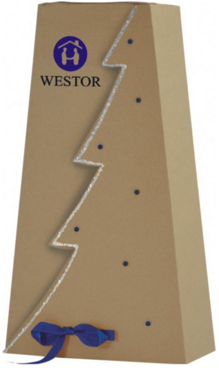 Pudełko “Choinka na 2 butelki” eko 786b z wzorem wypukłym srebrnym + granatowe kulki minimalne zamówienie 50 szt