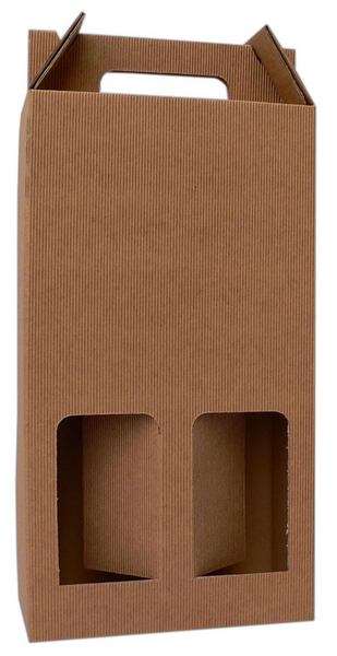 Pudełko w kształcie skrzynki na 2 butelki z uchwytem z tektury falistej 4 warstwowej o wymiarach: – szerokość:175mm – wysokość:315mm – głębokość:85mm UWAGA: Minimum zamówieniowe: 20 szt.